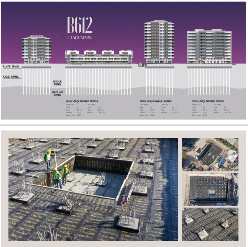 265 adet 80 cm çapında 15,50 metre derinliğinde Jet Kazık